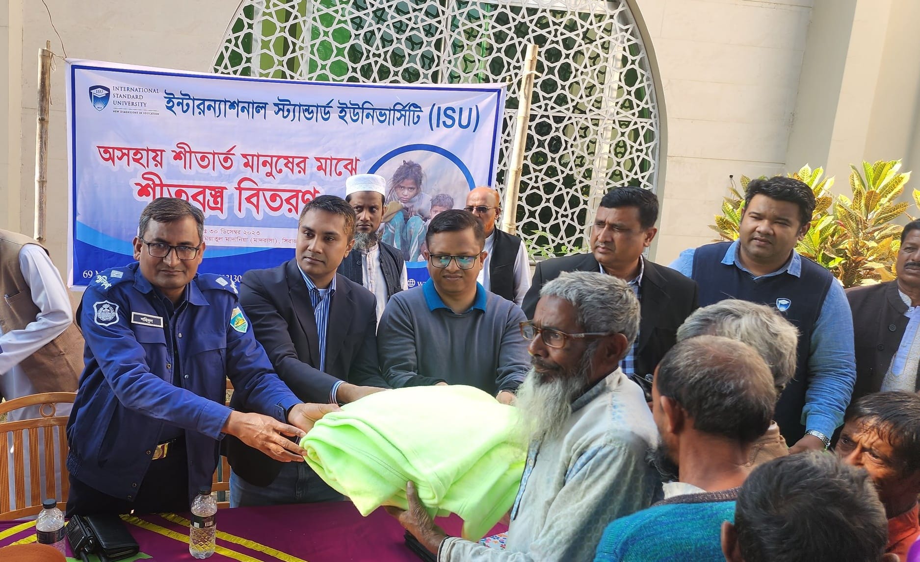 সিরাজগঞ্জে ইন্টারন্যাশনাল স্ট্যান্ডার্ড ইউনিভার্সিটির উদ্যোগে শীতবস্ত্র বিতরণ