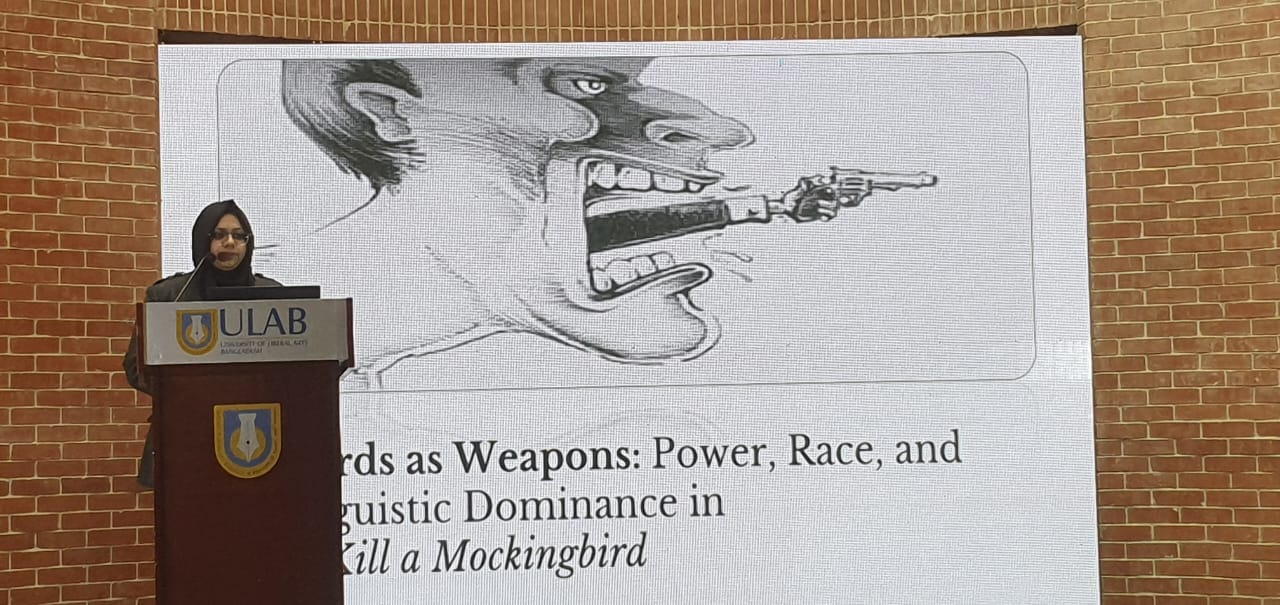ISU's Department of English, presented her paper titled "Words as Weapons: Power, Race, and Linguistic Dominance in To Kill a Mockingbird" at ULAB's 10th DEH Inter-University Student Conference and Cultural Competition