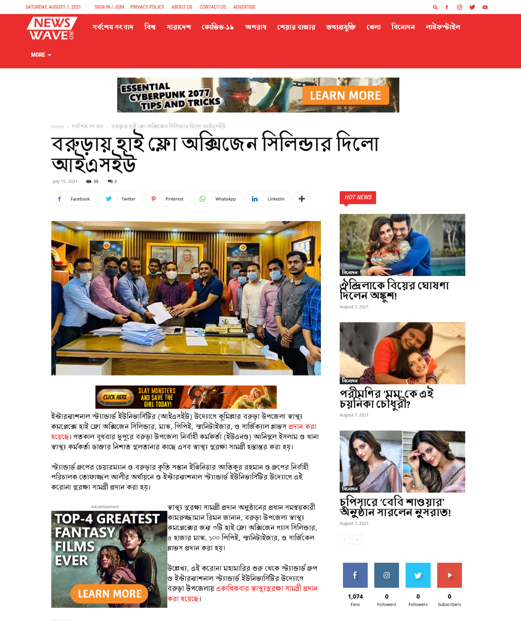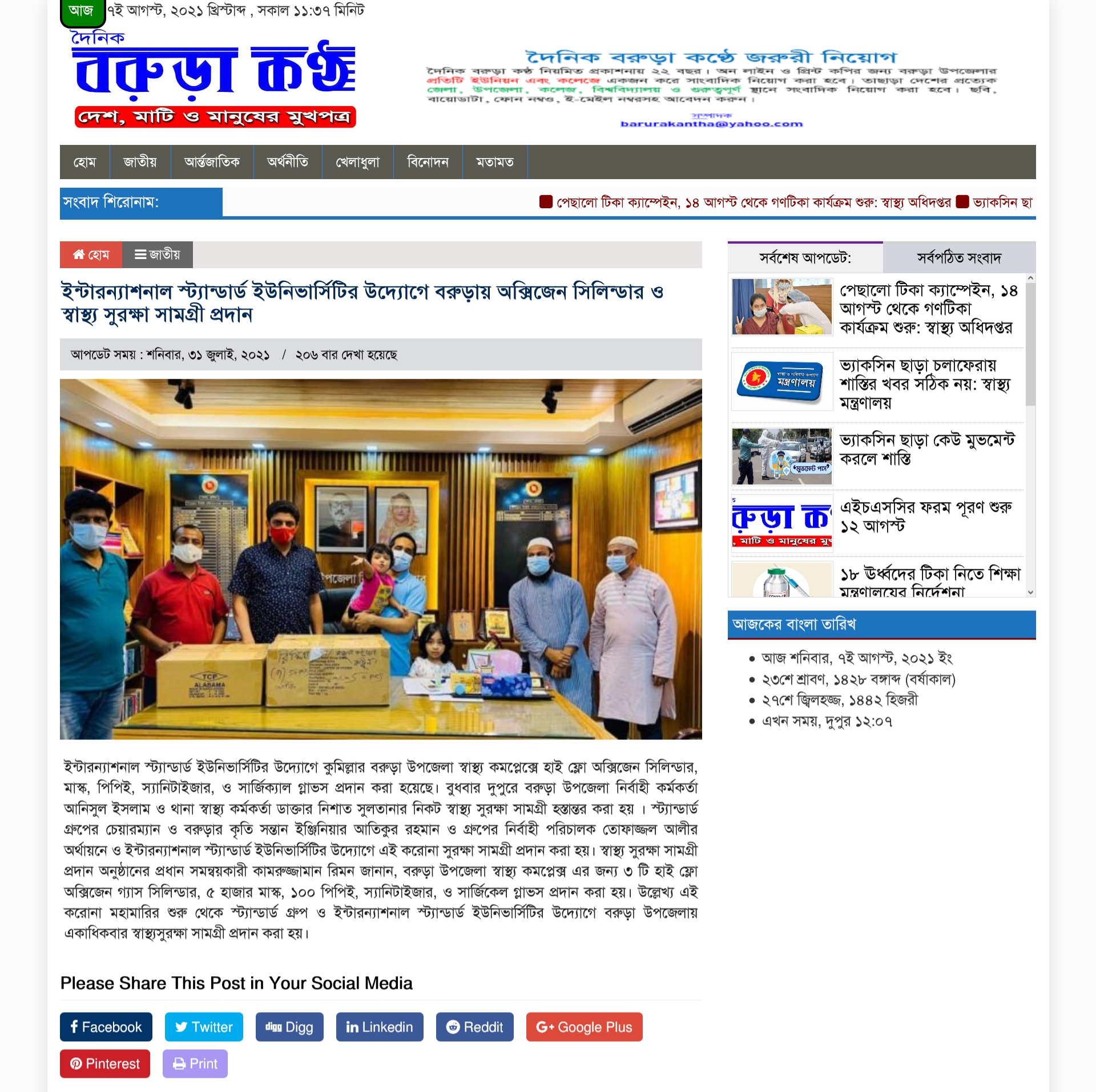 High Flow Oxygen Cylinder Distribution Program in Cumilla