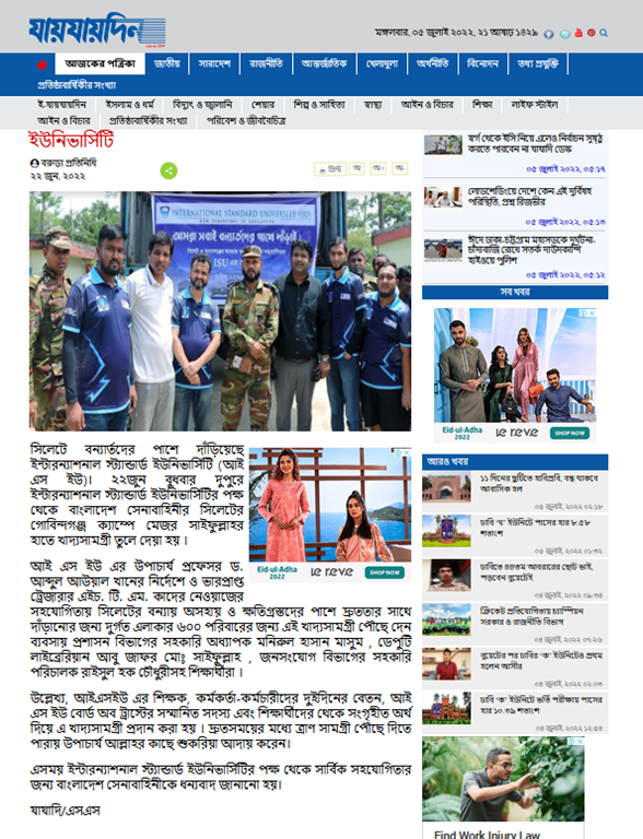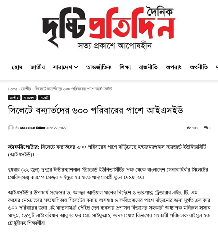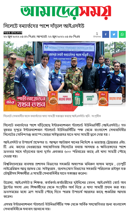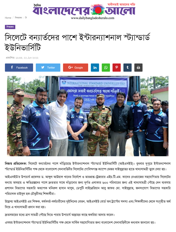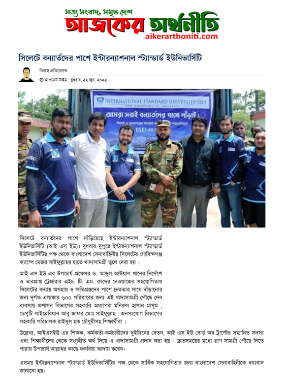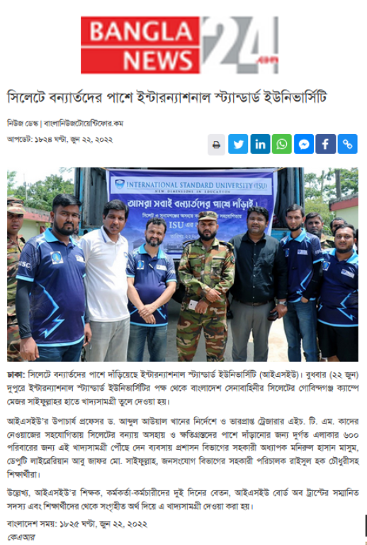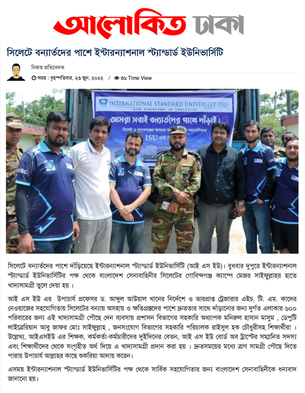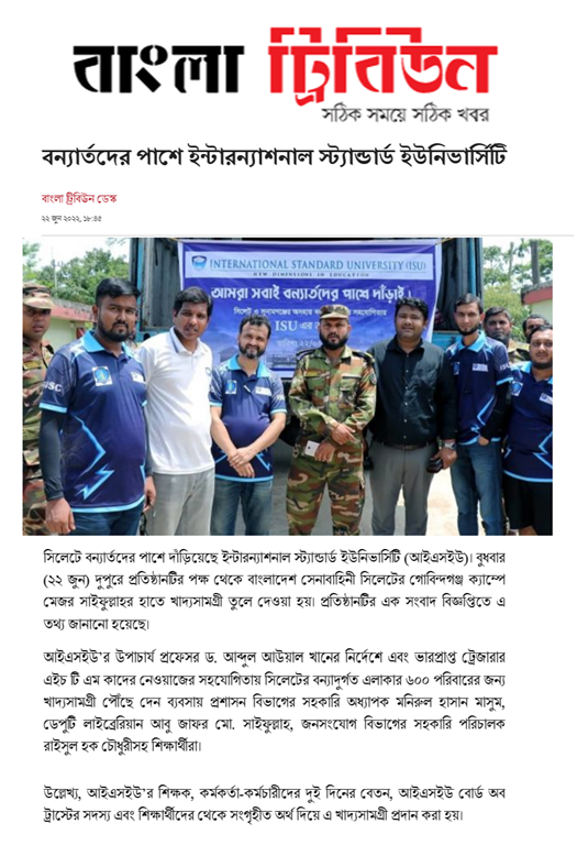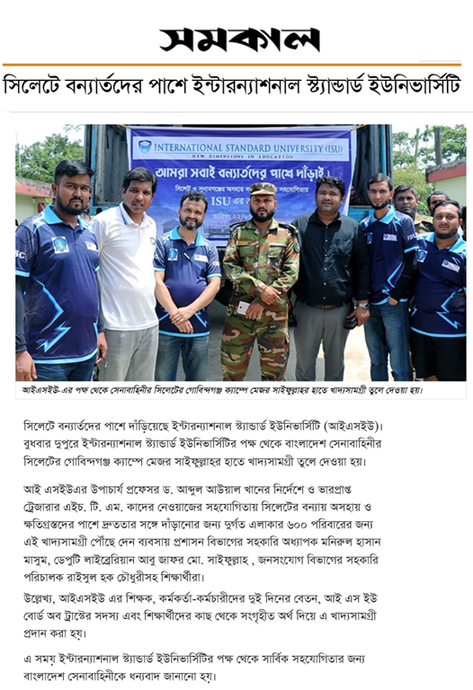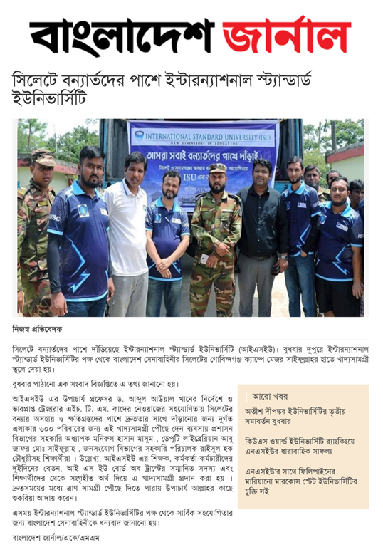 সিলেটে বন্যার্তদের পাশে ইন্টারন্যাশনাল স্ট্যান্ডার্ড ইউনিভার্সিটি